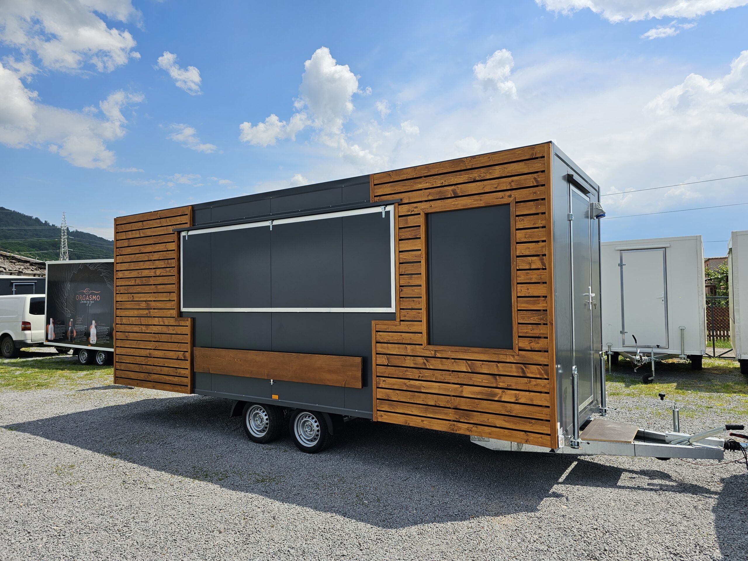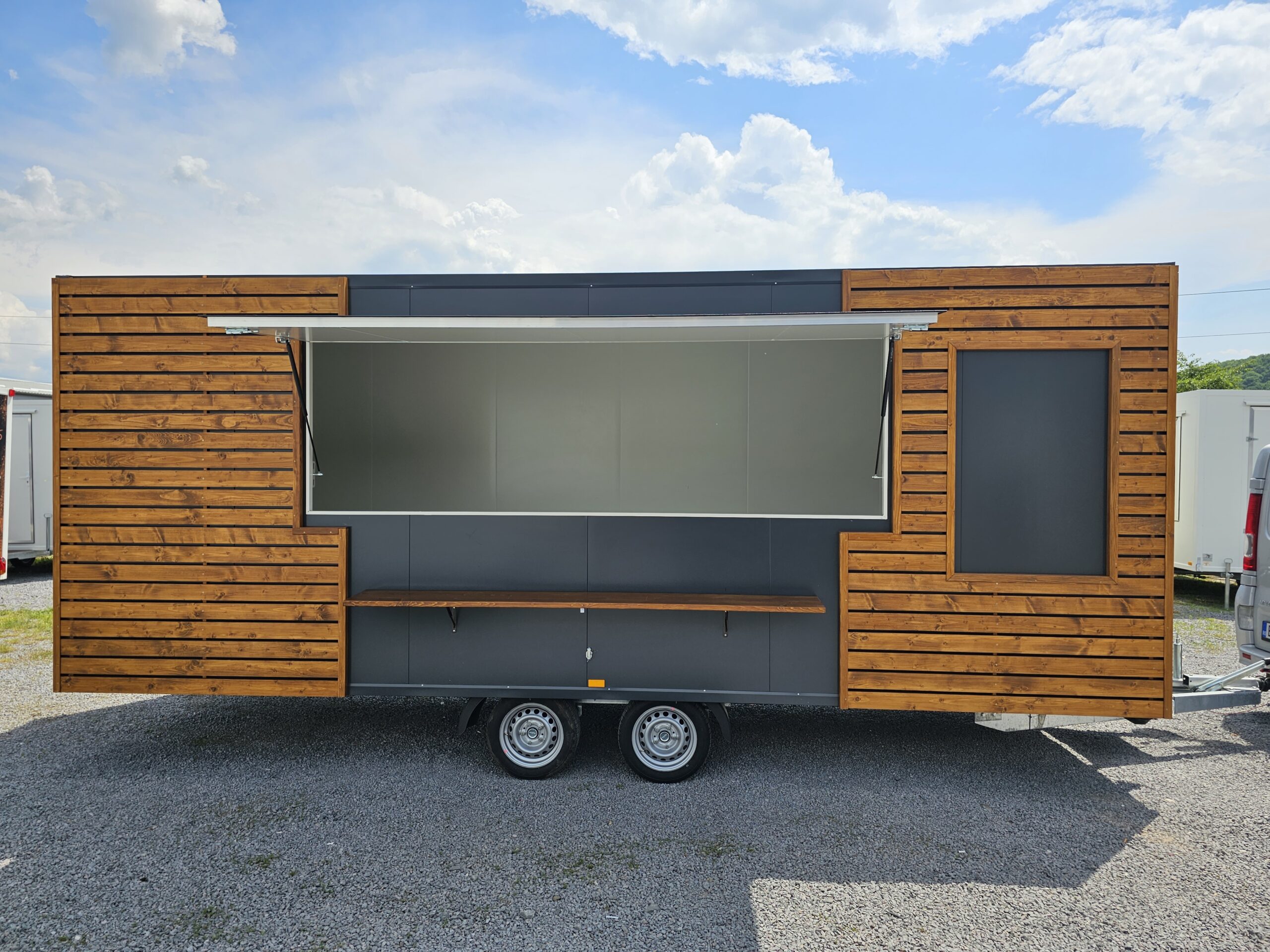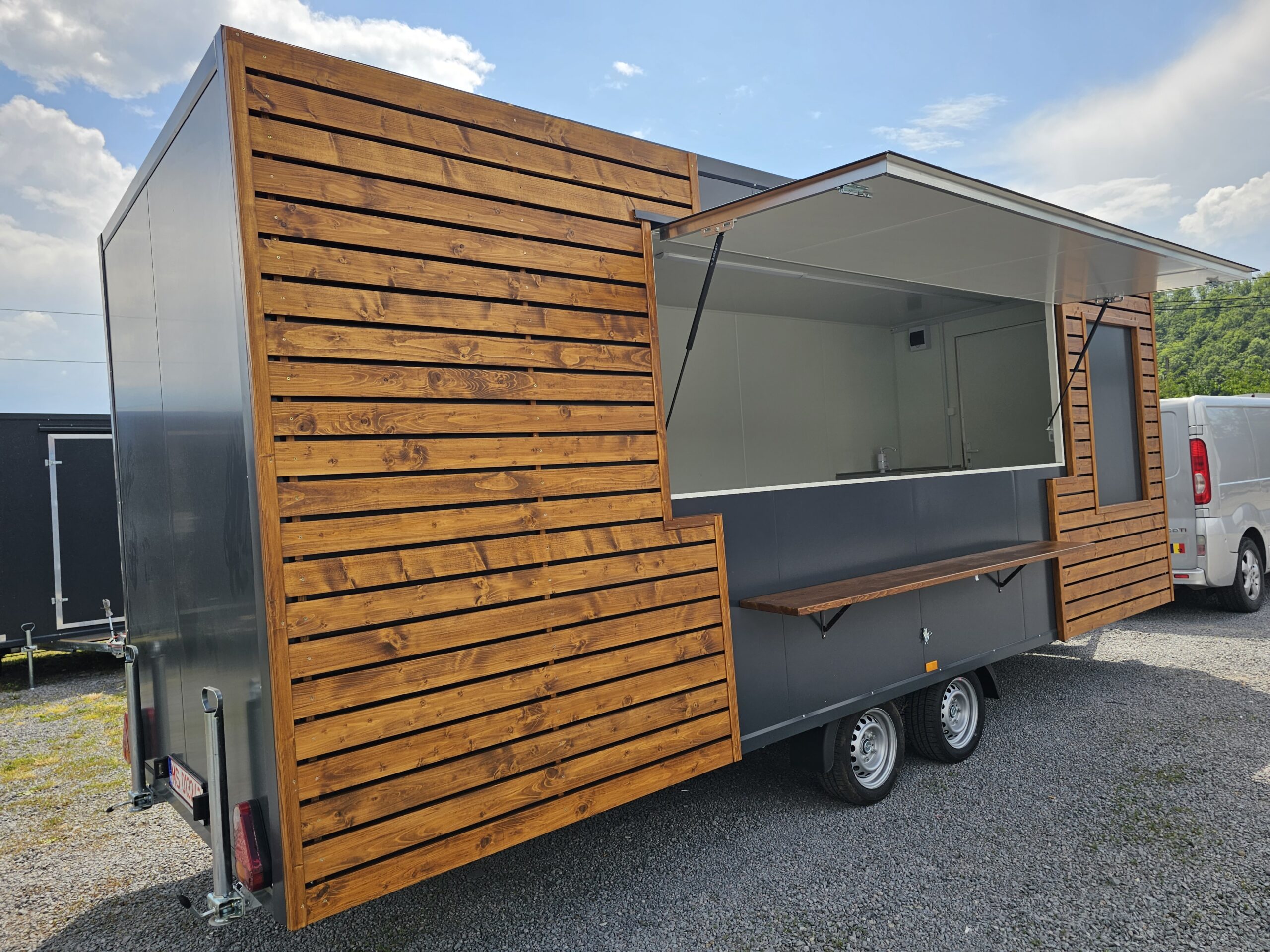 Ez a 2024-es gyártású, duplatengelyes modell a kínálatunk zászlóshajója. Nem csupán a méretei (6 méter hosszúság) teszik lenyűgözővé, hanem a vevői igényekre szabott fa díszítőelemek is, amelyek meleg, hívogató hangulatot árasztanak, növelve az ügyfélélményt és a kocsi presztízsét.