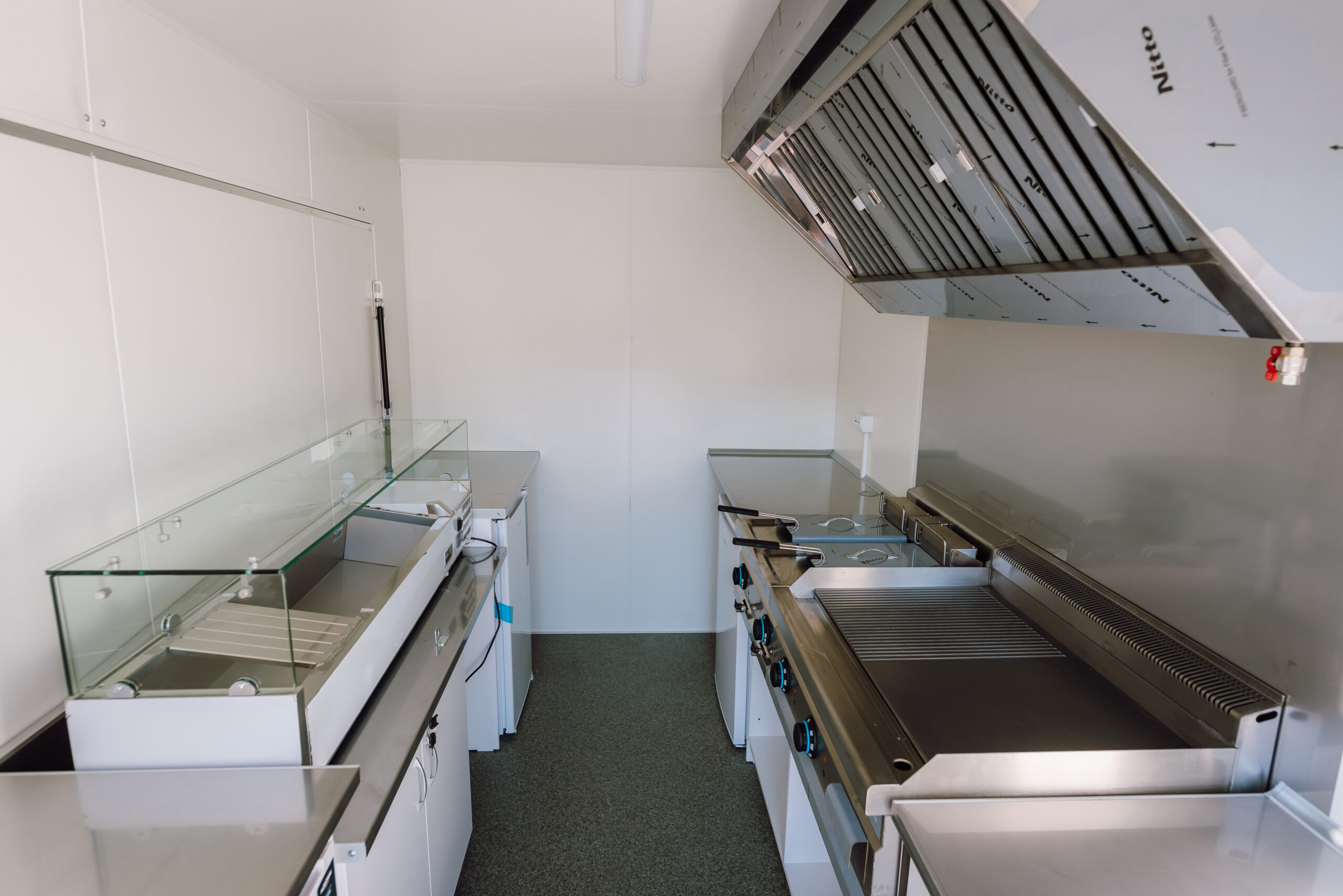 4 Méteres Antracit Büfékocsi – Teljes Konyhatechnológia és Higiénia